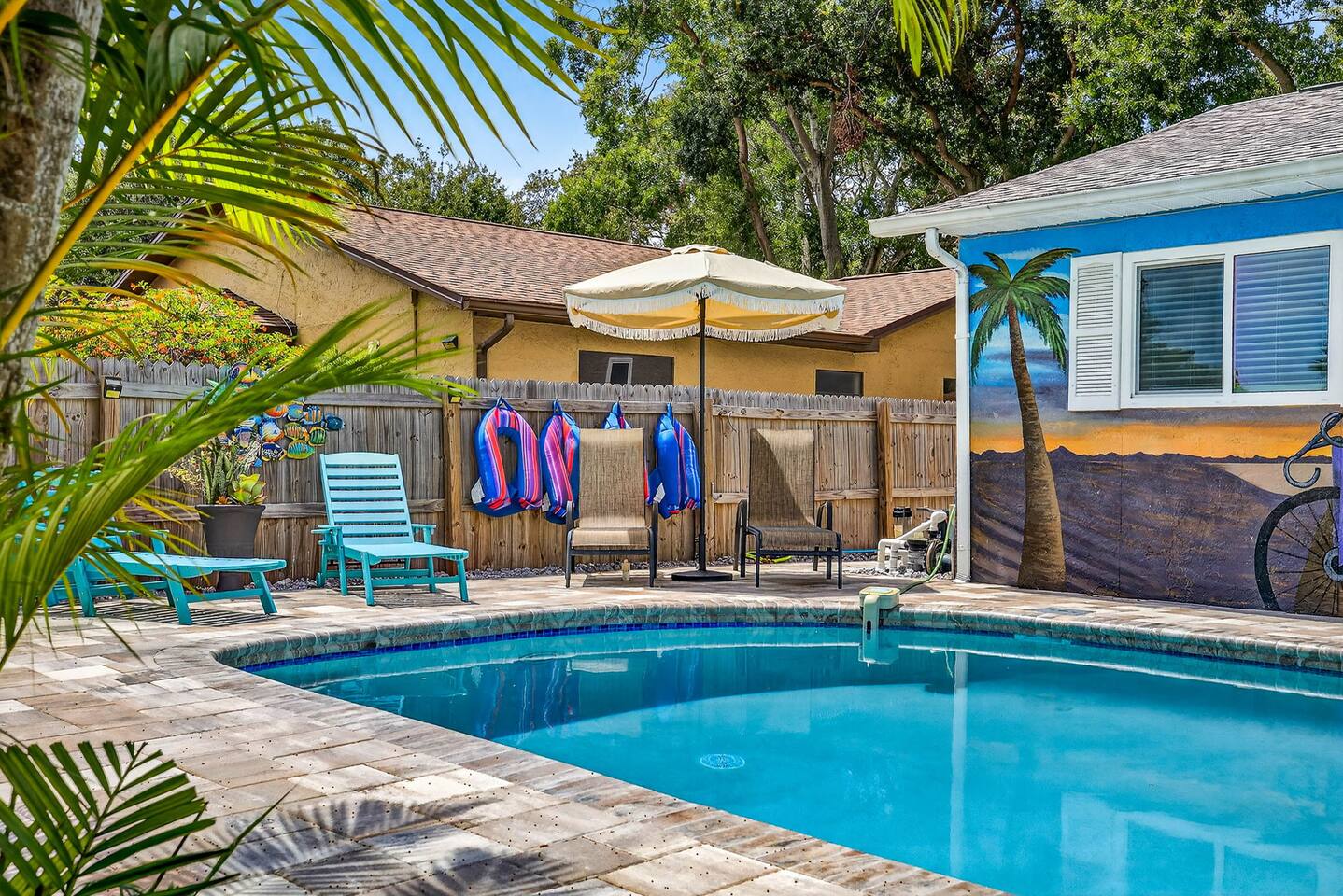 The Cycling Mermaid — TIME-SAVING BONUS! • Skip the hassle: keyless entry, local tips & itinerary = more vacation! • ~10 min to Dunedin & Honeymoon Island • ~15 min to Tarpon Springs • 0.5 mi from Pinellas Trail – 8 bikes included • Pristine HEATED pool: swim anytime • Kid friendly: games, sand toys, arcade, floats, fencing • Stocked: beach towels, spices, coffee bar, laundry pods • Outdoor: patio, mini fridge, grill, TV • Walkable: grocery, restaurants, quiet area • Always-on host support!