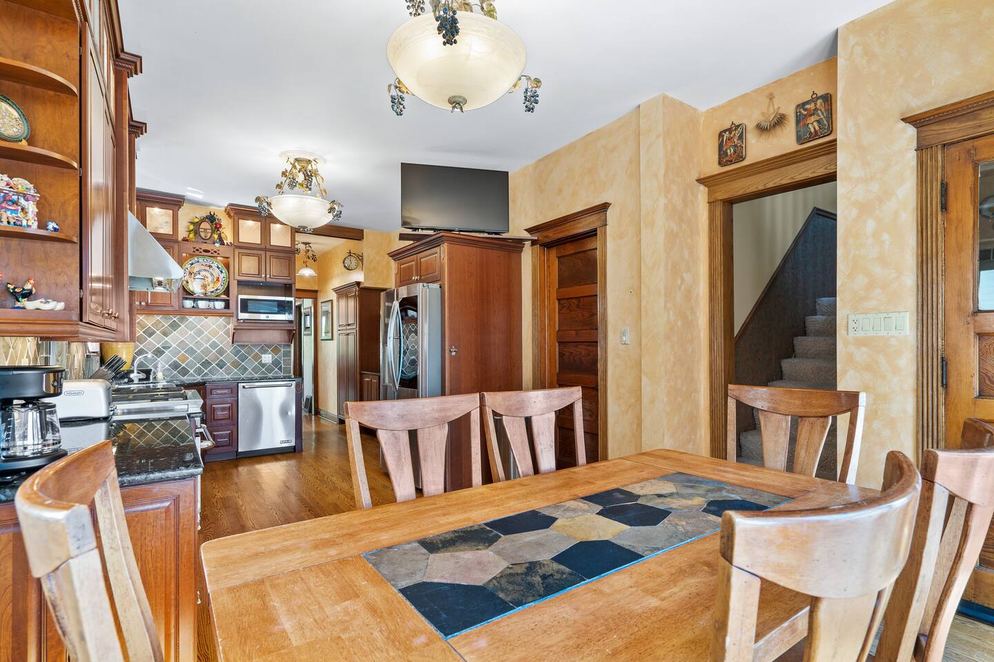 - Parking Garage with 2 spots and EV charger! - Large desk with Monitor, Keyboard, and Mouse! - 10 Minute walk to Irving Park Brown Line Station - Desirable North Center / St. Ben's location - Huge primary suite with jacuzzi and steam room - Front and back decks! - Within walking distance to numerous restaurants - Fully furnished with everything you'll need - HUGE Apartment 4 bedrooms and 3 full bathrooms - Coffee included! - The yard is NOT fenced. - Owner lives on first floor of building.
