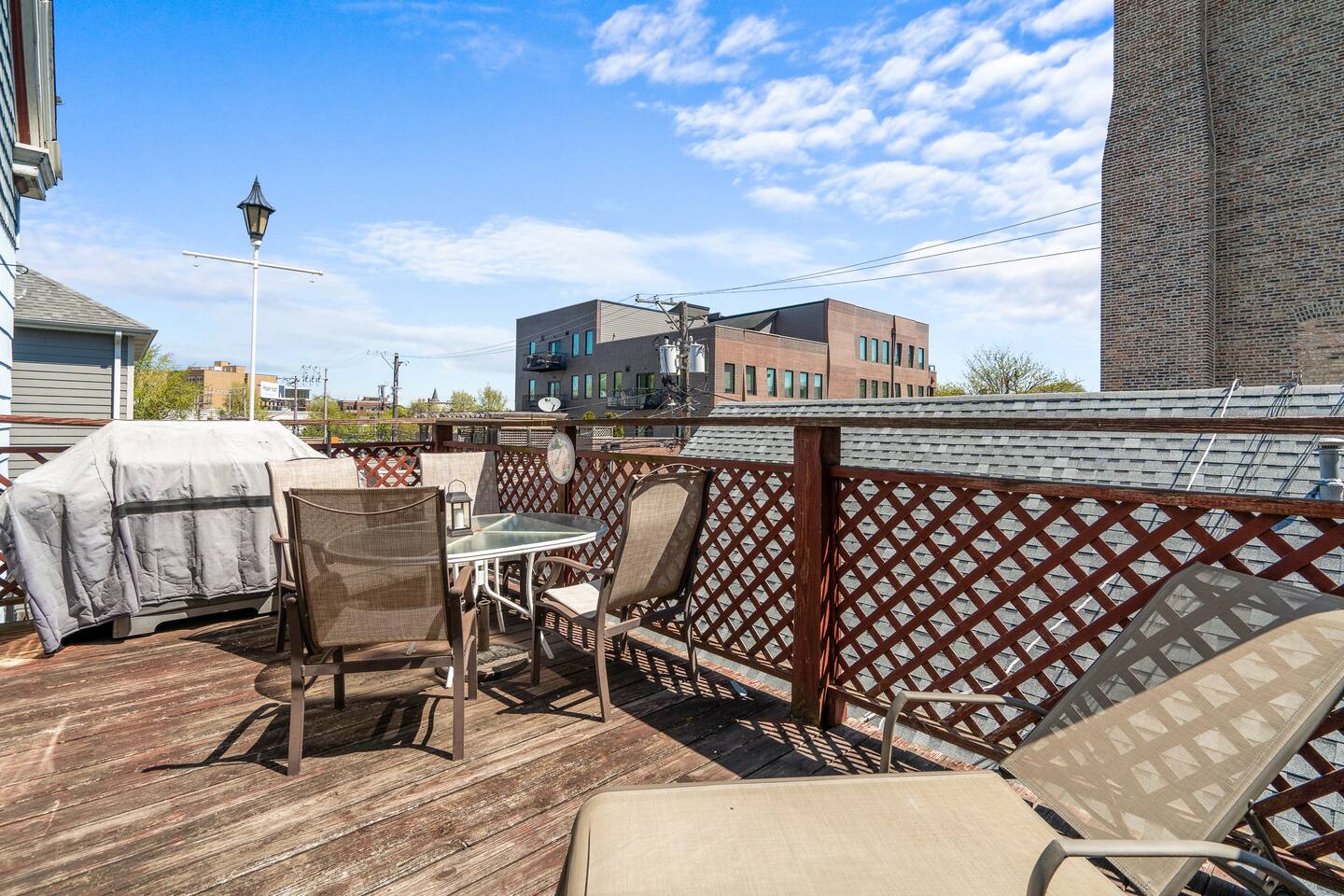 Looking for a spacious, stylish, and fully-equipped home in the heart of Chicago? Book your stay now and make this beautiful retreat your home away from home! Property Highlights -Entire Apartment: Spans the 2nd and 3rd floors, featuring 4 bedrooms and 3 full bathrooms. -Top Floor Master Suite: Enjoy a king-sized bed, walk-in closet, TV, desk, nightstands, dresser, and an ensuite with a steam room shower. Additional Bedrooms: -Top Floor: Twin bed with ensuite bathroom and walk-in shower. -Main Level: Queen-sized bed with dresser and nightstand, plus a cozy twin-bed room near the kitchen. Bathrooms -Two ensuite bathrooms on the top level, plus a common bath with a tub/shower combo on the main floor. Indoor Amenities -Relaxing Spaces: Unwind in the living room with comfortable seating, a TV, and cozy gas fireplaces. -Fully Equipped Kitchen: Granite countertops, table for 6, plus a formal dining room with additional seating. -Comfort Features: High ceilings, ceiling fans, hardwood floors, and classic charm with modern touches. Outdoor Perks -Two Private Decks: Furnished outdoor spaces perfect for morning coffee or evening drinks. -BBQ Grill & Hot Tub Jacuzzi: Ideal for dining al fresco or soaking in the Jacuzzi after a long day. Prime Location -Convenient Parking: Includes 2 spots with an EV charger. -Walkable Neighborhood: Located in the desirable North Center/St. Ben's area, just a 10-minute walk to Irving Park Brown Line. -Dining & Entertainment: Steps from fantastic restaurants, cafes, and local attractions. Experience ultimate comfort and style in this spacious, well-appointed Chicago retreat—ideal for families, friends, or work stays. Minut Device: The unit is monitored by a noise detection device called Minut. This device monitors how loud it gets in the unit, cigarette and marijuana smoke, and how many Bluetooth devices walk through the door. This device is solely to prevent parties from occurring in the unit and ensure we respect the neighbors. This is not a recording device. For more information about the device, visit their website. Early Check-In / Late Check-Out Options: Our standard check-in time is 4:00 PM, but if you'd like to arrive earlier, we offer flexible early check-in options based on availability starting five days before your arrival date. This allows us time to try and sell the full night first, which is always our priority. Here are the early check-in options if available: 1 Hour Early Check-In – $30 Half Day Stay (Check-In Between 10:00 AM and 4:00 PM) – Half the nightly rate Before 10:00 AM – Full nightly rate