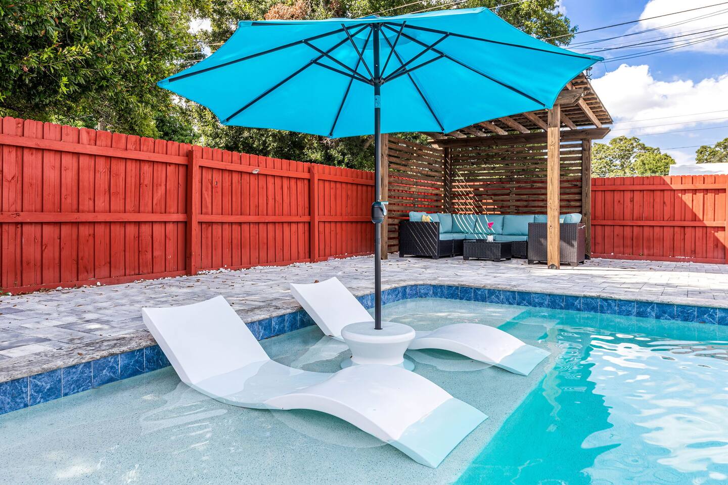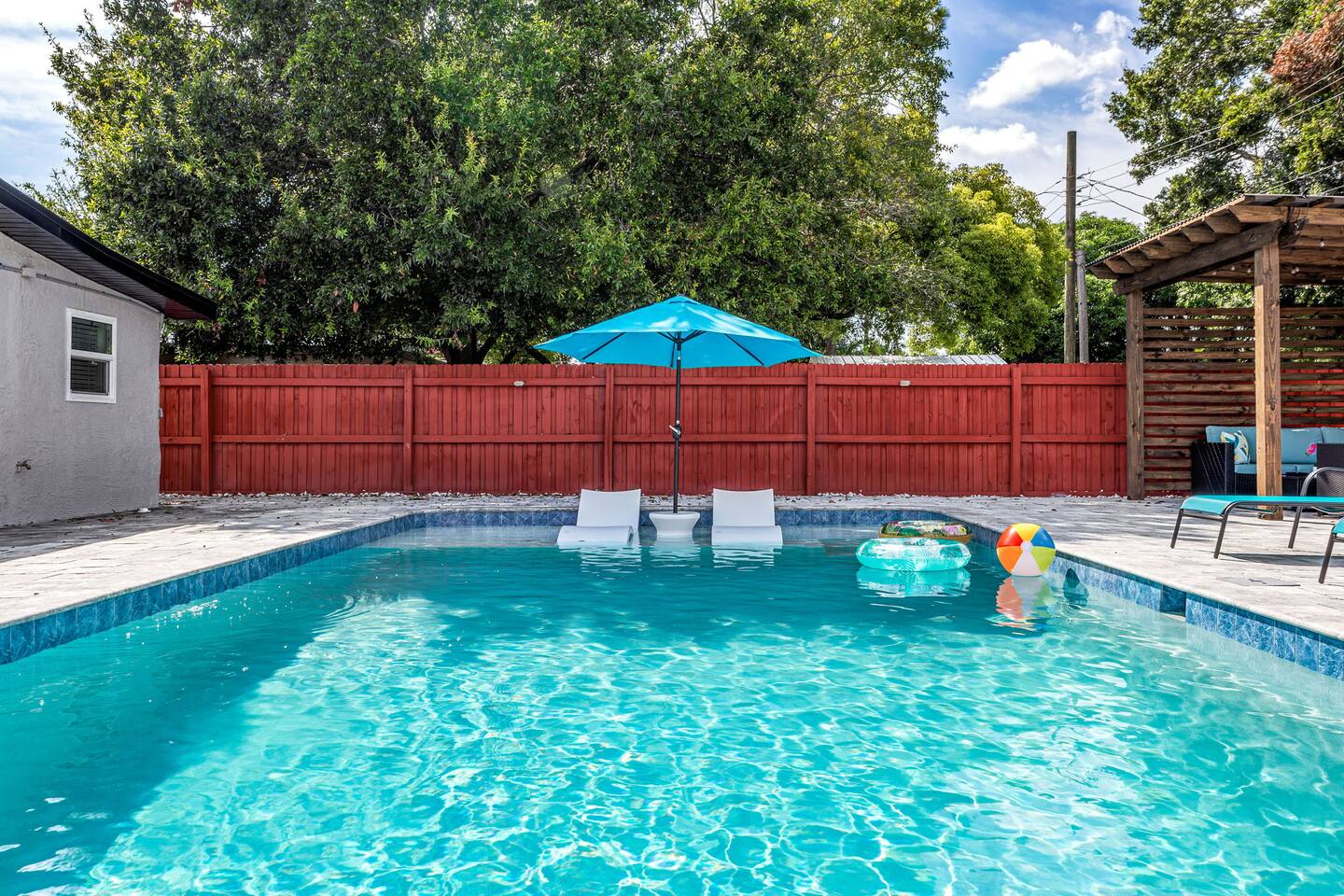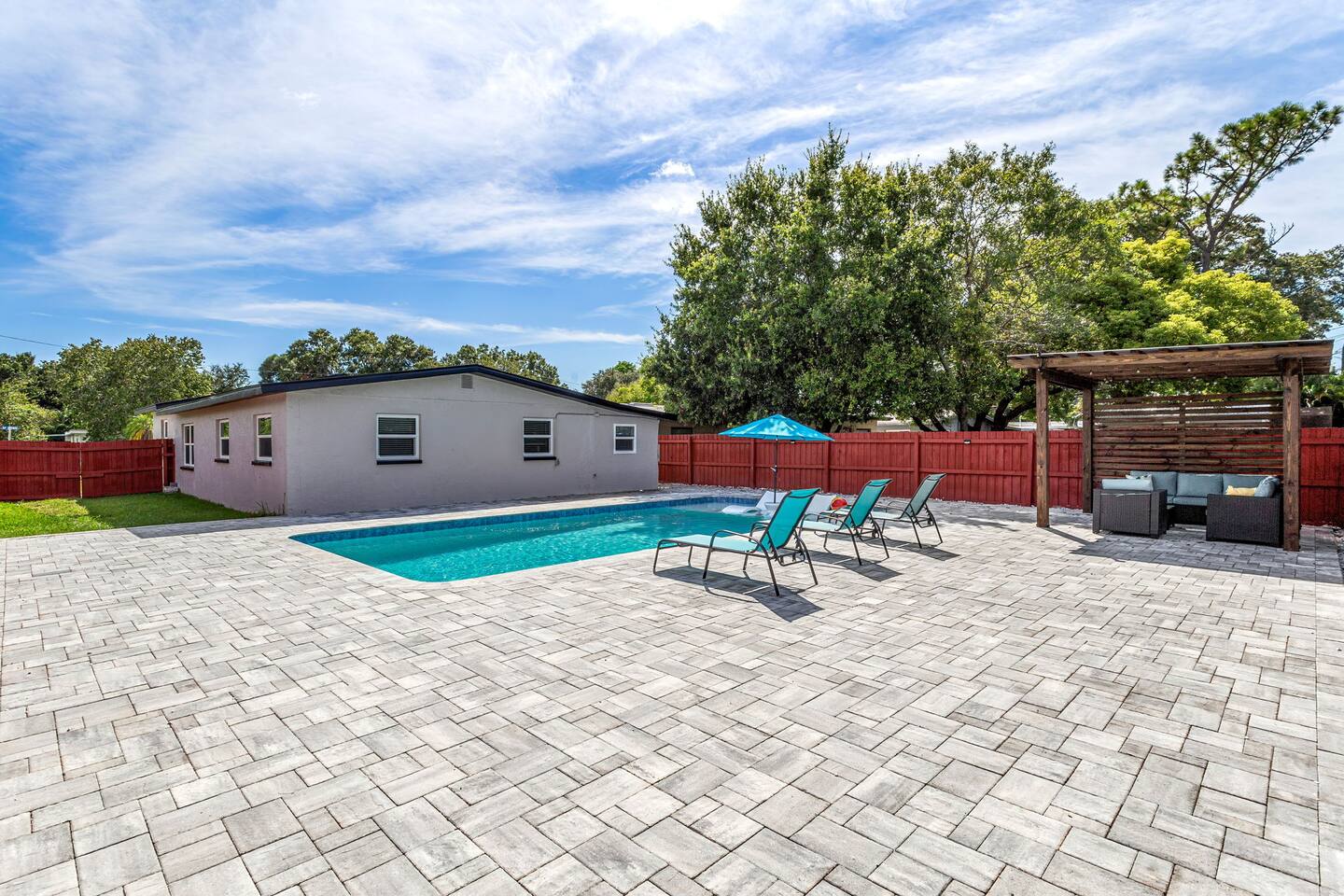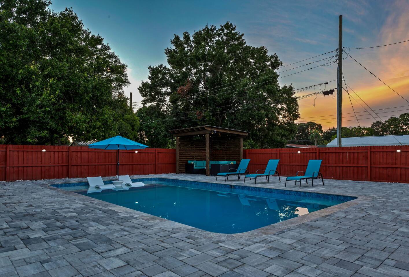Fierce Co-Hosting Presents, The Pinellas Park Pad -20 minutes to beaches - Beautifully renovated single-story home - Located between Dunedin and St. Petersburg - Stunning backyard with HUGE heated saltwater pool - Comfortable sun loungers for relaxation and fun - Each room equipped with its own Roku Smart TV - Modern finishes for a stylish ambiance - Upgraded coffee station with locally roasted coffee - Laundry onsite - Two driveways - Within 15 minutes to downtown St. Petersburg!