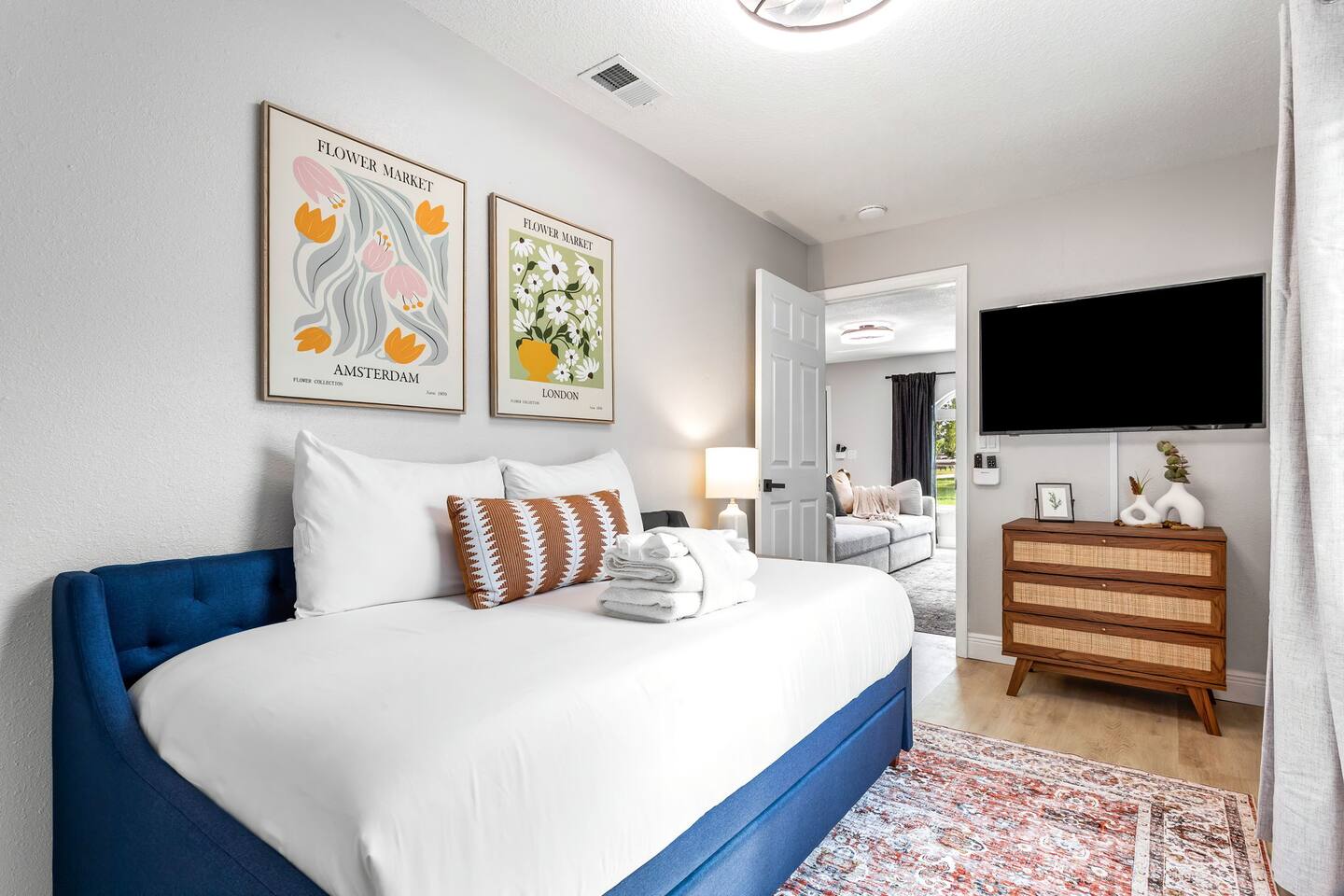 If you’re planning to attend the exciting Pinellas Pepper Fest or enjoy a fantastic evening at the Whitney Houston Tribute Concert, our accommodations offer the perfect place to stay. Located just minutes away from these exciting events, our hotel provides you with easy access to all the festivities in Pinellas Park, Florida. -Single-story home, ideal for elderly guests -Keyless entry for easy check-in -Guests have full access to the entire home BEDROOM 1 -Queen bed -Smart TV -Nightstand -Bedside table lamp -Dresser BEDROOM 2 -Queen bed -Smart TV -Ceiling fan BEDROOM 3 -Queen bed -Smart TV -Ceiling fan -Bedside table lamp -Dresser BEDROOM 4 -King bed -Dresser -Smart TV -Bedside table -Ceiling fan -Bedside table -Bedside table lamp BEDROOM 5 -Twin -Twin Trundle under -Smart TV KITCHEN -Island -Chandelier -Blender -Oven mitts -Dinner plates -Refrigerator -Dishwasher -Oven -Coffee Maker -Spices -First aid kit COFFEE STATION -Fully equipped kitchen with everything you need to cook and serve meals -Upgraded coffee station featuring: -Keurig Duo Coffee Maker -French Press -Bonzi Coffee (local roaster) -Tea selection, flavored syrups, and hot cocoa GENERAL AMENITIES -Heated salt water Pool no enclosure -Smart TV in the living room -Complimentary WiFi -Central air conditioning -Towels and linens provided -Washer/Dryer -Essential toiletries provided (mini shampoo, conditioner, body wash, trash bags, paper towels) Please note there is a floodlight security camera on the garage facing the driveway, and a doorbell camera. Early Check-In / Late Check-Out Options: Our standard check-in time is 4:00 PM, but if you'd like to arrive earlier, we offer flexible early check-in options based on availability starting five days before your arrival date. This allows us time to try and sell the full night first, which is always our priority. Here are the early check-in options if available: 1 Hour Early Check-In – No charge (subject to availability) Half Day Stay (Check-In Between 10:00 AM and 4:00 PM) – Half the nightly rate Before 10:00 AM – Full nightly rate is