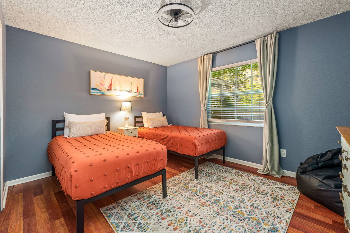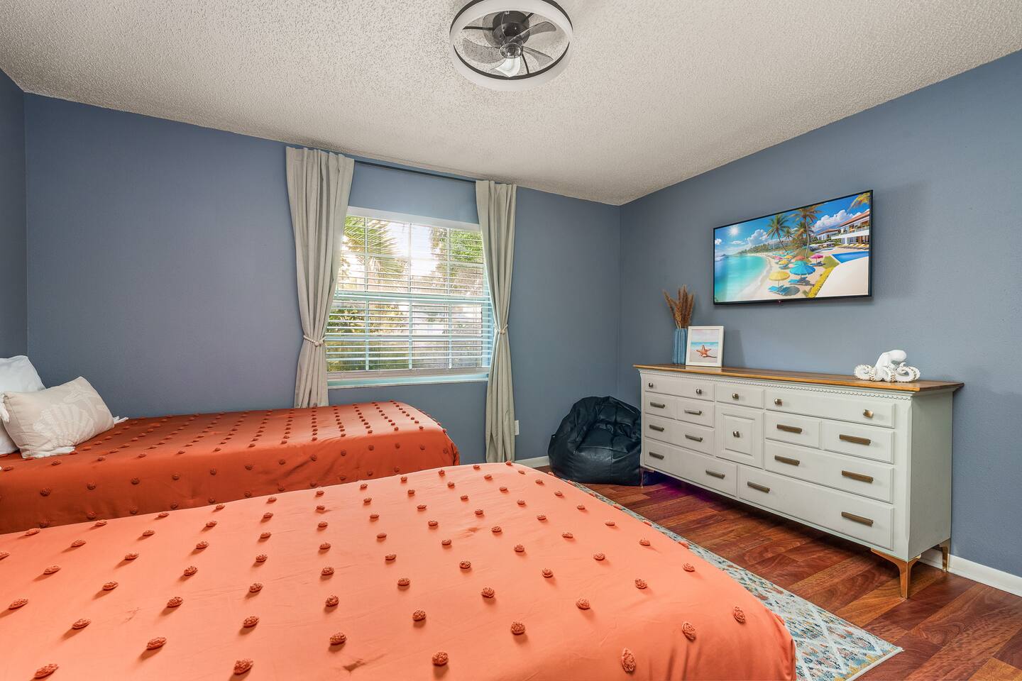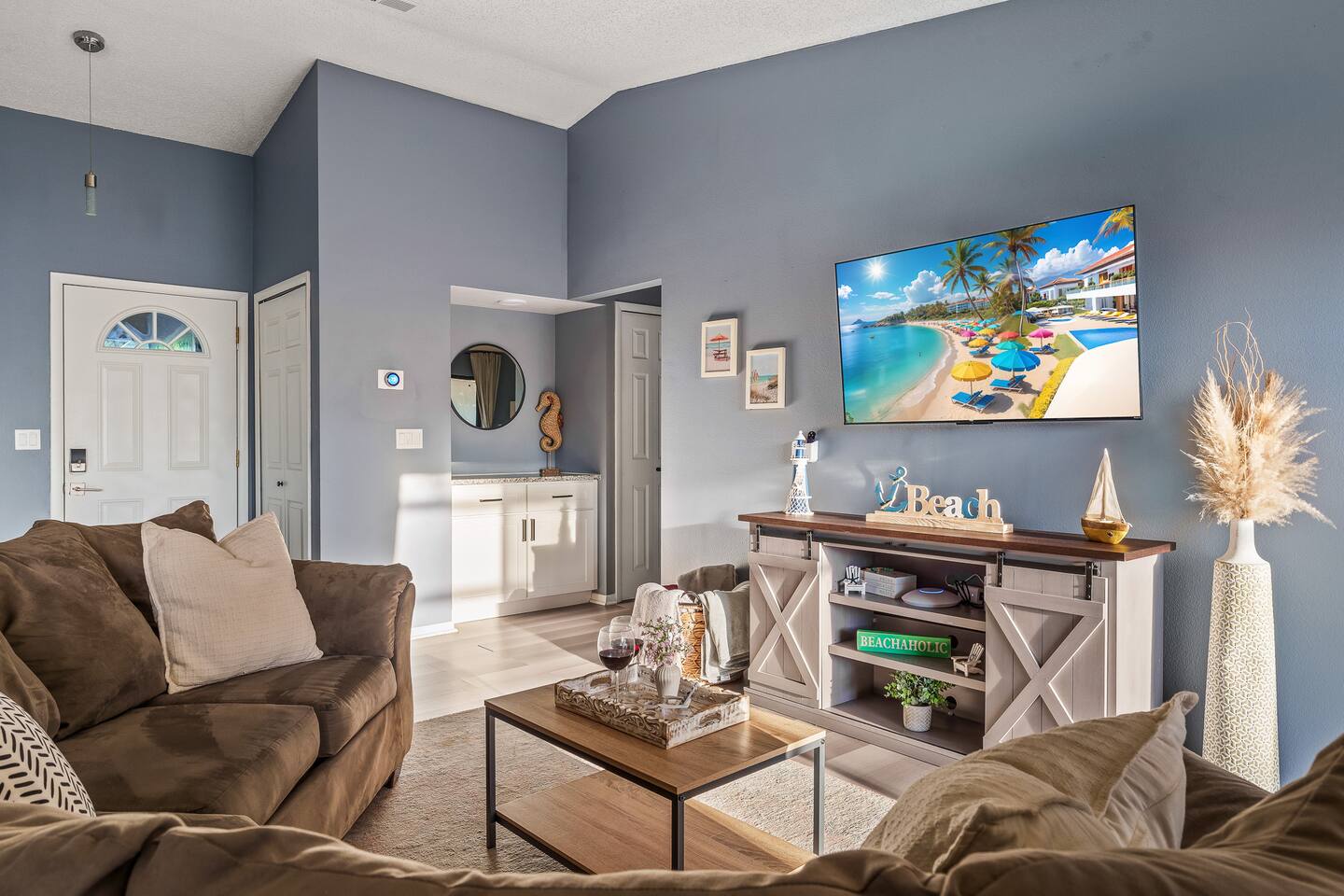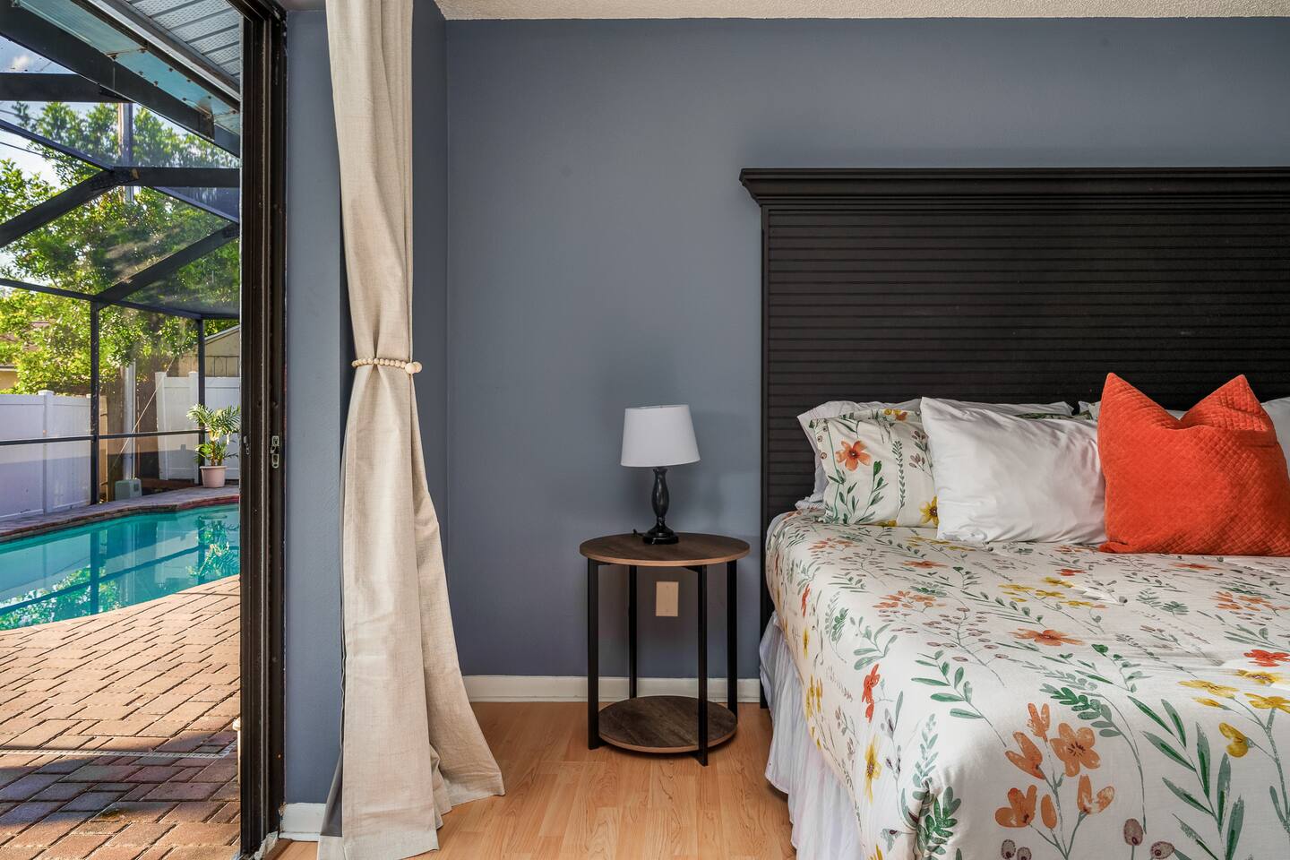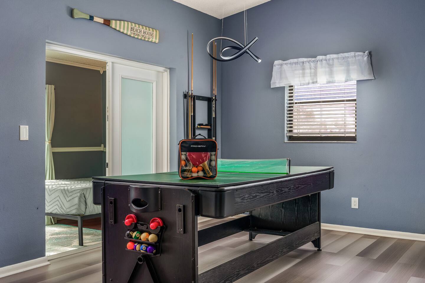 PRIME LOCATION - Just 6 miles from the beach - Step-free access for easy mobility - Recently renovated for a modern, comfortable stay - Single-story home ideal for seniors - Decorative fireplace (not operational) - Keyless entry for effortless check-in EXCLUSIVE PERKS: We've partnered with amazing local businesses to offer you a range of discounts! Our curated digital guidebook includes restaurant recommendations, local attractions, and all your discount codes. BEDROOM 1 FULL BED - Black out Curtains - Air Conditioner - Floor lamp BEDROOM 2 MASTER KING BED - Smart TV - Full length mirror - Vacuum cleaner - Iron & Iron board - Roll away twin - Closet - Dresser - End table - Black out curtains BEDROOM 3 QUEEN BED - Ceiling Fan - Fan - Beside table lamp - Smart TV - Dresser - Mirror - Closet BEDROOM TWINS BEDS - Closet - Bedside table - Bedside lamp - Smart TV - Dresser - Bean bag chair - Blackout curtains - Twin bed KITCHEN - Bakeware - Oven mitts - Cooking utensils - Dinner plates - Hand mixer - Toaster - Noise sensor - Glasses - Microwave - Refrigerator - Dishwasher - Oven - Cookware set - Spices - Dining table Everything youâll need to cook and serve a meal! UPGRADED COFFEE STATION - Keurig Duo Coffee Maker - French Press - Bonsai Coffee from a local roaster - Tea selection - Flavored syrups - Hot cocoa! SCREENED LANAI - Pool - Smart TV - Outdoor lounge - Outdoor furniture - Tiki toss game - Outdoor fan - Flood light GENERAL AMENITIES - Complimentary Wi-Fi - Central Air Conditioning - Towels/Linens Provided - 2 towels provided per guest - Washer/Dryer - Consumable products such as shampoo, conditioner, body wash, trash bags, and paper - Pets allowed for a fee - Workstation for remote work includes Monitor, Keyboard, Mouse, and HDMI Cord. - 3-in-1 Pool Table, Air Hockey, & Ping Pong for indoor recreation - Ceiling Fans in all rooms for added comfort Check-In Info: -- Standard check-in is 4 PM. Early check-in may be available starting 5 days before arrival: - 10 AM to 4 PM: Additional half nightly rate