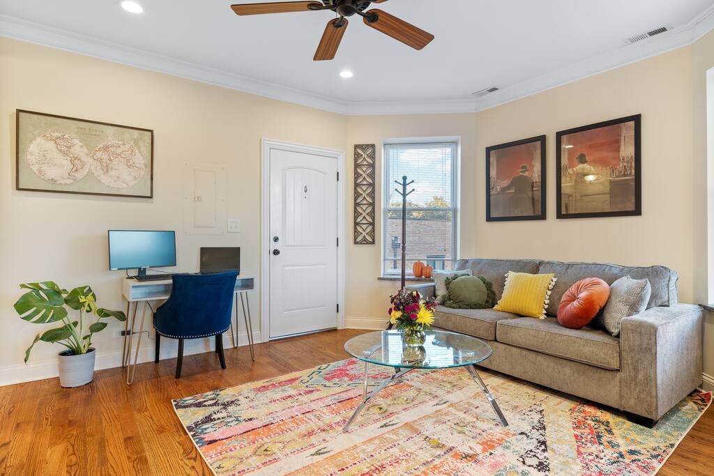 Perfect Mid/Long-Term Chicago Home – Fully Furnished & Move-In Ready Ideal for professionals on extended stays (32+ nights). Spacious 2BR/1BA in vibrant North Center. HIGHLIGHTS: • Hotel-quality linens & furnishings • In-unit washer & dryer • Fast WiFi + workspace • Full kitchen, all utilities included • Private patio LOCATION: • 5-min to Irving Park Brown Line • 1.5 miles to Wrigley Field • Walk to groceries, gyms & dining Superhost: 161 reviews, 4.99 rating!