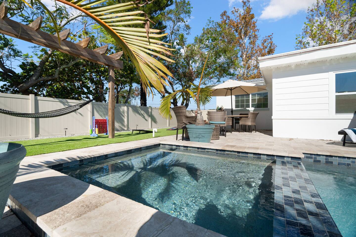 ⭐️ Previously a 5.0-Star Favorite – Under Same Host, New Ownership! I personally hosted this home for the past year and welcomed 34 stays — all 5-star reviews. At that time, the listing was under the previous owner, so the reviews did not transfer to this new listing even though I was the host providing the experience. I have now purchased the home and continue to host it with the same hospitality, standards, and upgraded amenities. Guests love this home for the heated pool, spotless cleanliness, comfortable beds, fast communication, and family-friendly setup. You're in great hands — I host professionally and take pride in creating memorable stays. THE SPACE: Escape to this beautifully renovated 4-bedroom, 3-bathroom home featuring designer furnishings and thoughtful touches throughout. The open-concept living area flows seamlessly into a fully-equipped gourmet kitchen with modern appliances, perfect for preparing group meals. Gather in the spacious dining area or relax in the stylish living room. BEDROOMS & BATHROOMS: • Bedroom 1 (Primary): King bed with ensuite bathroom • Bedroom 2: King bed • Bedroom 3: Queen bed • Bedroom 4: 2 Full beds with ensuite bathroom • Common bathroom (shared by Bedrooms 2 & 3) LUXURY COFFEE EXPERIENCE: Start your mornings with our exceptional coffee station featuring: • Specialty Bonsai Coffee - freshly roasted by a local Clearwater artisan and delivered exclusively for our guests • Upgraded Keurig Duo with premium Starbucks K-cups • French press for the perfect brew • Hot chocolate and curated tea selections • All supplies provided for your convenience Instead of traditional welcome baskets, we provide this artisan coffee experience that coffee lovers truly appreciate! OUTDOOR OASIS: Your private backyard paradise features a heated saltwater pool and luxurious hot tub - perfect for unwinding after a day at the beaches (10–15 min), famous Johns Pass (15 min), or vibrant downtown St. Petersburg nightlife (15 min). Door alarms on all pool entrances meet Florida safety requirements. Additional outdoor amenities include covered patio seating, BBQ grill, and lush tropical landscaping. Pool service twice weekly ensures pristine conditions. FAMILY-FRIENDLY: Full-size crib rollaway PLUS pack and play available for our youngest guests. ENTERTAINMENT: Dedicated game room for family fun and friendly competition. High-speed WiFi throughout the home. EXCLUSIVE PERKS: We've partnered with amazing local businesses to offer you 10% discounts at Mama G's Bakery & Cafe, Cruisin' Tikis Clearwater, Gulf Coast Bartender Co, Tampa Bay Baches, Liquid Lux IV, The Charcuterie Drop, Bride Tribe Events, Coastal Cruises, and more! Our curated digital guidebook includes restaurant recommendations, local attractions, and all your discount codes. GUEST ACCESS: You'll have exclusive access to the entire home and all its amenities! This includes: • All 4 bedrooms and 3 bathrooms • Full kitchen with all appliances and cookware • Living and dining areas • Game room with entertainment options • Private heated pool and spa/hot tub • Outdoor patio area with BBQ grill and seating • Spacious driveway parking for multiple vehicles • High-speed WiFi throughout • Washer and dryer This is your private oasis - relax and enjoy the entire property as if it were your own home! Pool and lawn maintenance are performed during your stay to keep everything pristine.