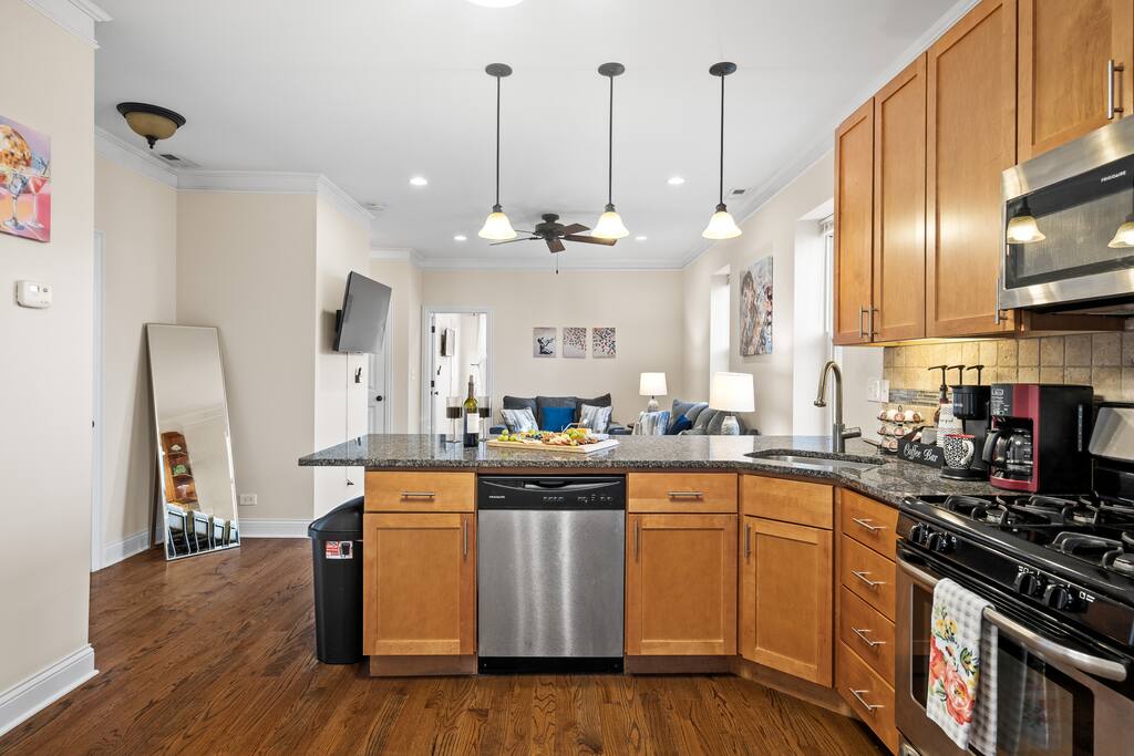 Fierce Co-Hosting offers stylishly decorated and comfortable living spaces for traveling professionals and vacationers. This Fierce Co-Hosting apartment offers our standard of comfortable beds, hotel quality linens, ultra high-speed internet, secure garage parking, and dedicated desk space in a conveniently located part of Chicago on the Northside in the North Center / St. Ben's area. Primary bedroom with queen bed, smart TV, 2 nightstands, lamps, full dresser, full-length mirror, and large walk-in closet. Second bedroom with full-size bed, smart TV, nightstands, lamp, full-length mirror, and large walk-in closet with small dresser. Living room with queen pull-out sleeper sofa. 55-inch smart TV (bring your login credentials to streaming services). A dedicated workspace with a computer monitor, wireless keyboard, and mouse on site is available for your use. Highspeed wireless internet is perfect for guests who work from home. Open floor plan with seating for 4 at the counter. Stainless steel appliances include a dishwasher, oven and stove combo, microwave, fridge, and freezer. Other appliances and kitchen amenities include a Keurig coffee maker, toaster, knife block, spice rack, ninja blender, and all items needed to cook and serve full meals. Outdoor covered patio with Edison bulb string lights. Two seats with a bistro table and battery tiki lamp. Minut Device: The unit is monitored by a noise detection device called Minut. This device monitors how loud it gets in the unit, cigarette and marijuana smoke, and how many Bluetooth devices walk through the door. This device is solely to prevent parties from occurring in the unit and ensure we respect the neighbors. This is not a recording device. For more information about the device, visit their website. Early Check-In / Late Check-Out Options: Our standard check-in time is 4:00 PM, but if you'd like to arrive earlier, we offer flexible early check-in options based on availability starting five days before your arrival date. This allows us time to try and sell the full night first, which is always our priority. Here are the early check-in options if available: 1 Hour Early Check-In – No Charge (subject to availability) Half Day Stay (Check-In Between 10:00 AM and 4:00 PM) – Half the nightly rate Before 10:00 AM – Full nightly rate NO PETS